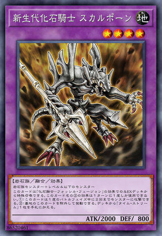 这张卡用「化石融合」的效果才能从额外卡组特殊召唤。这个卡名的②的效果1回合只能使用1次。 ①:这张卡向守备表示怪兽攻击的场合,给与攻击力超过那个守备力的数值的战斗伤害。 ②:把墓地的这张卡除外才能发动。从卡组把1张「化石融合」加入手卡。