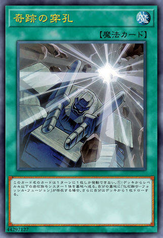 化石卡组本家检索点,一般用【奇迹的开孔】送墓,一卡启动。②效果忽略。