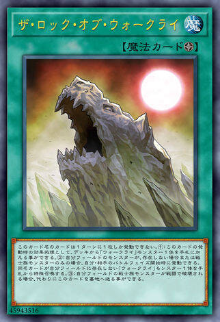 效果:作为这张卡的发动时的效果处理:可以从卡组把1只「战吼」怪兽加入手卡。自己场上没有怪兽存在的场合或者自己场上的怪兽只有战士族怪兽的场合,战斗阶段开始时:可以把同名卡不在自己场上存在的1只「战吼」怪兽从手卡特殊召唤。自己的战士族怪兽被战斗破坏的场合,可以作为代替把这张卡送去墓地。「战吼的奇岩」在1回合只能发动1张。