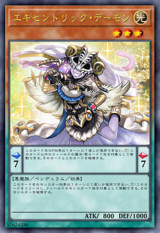 ←7 【灵摆】 7→ 「古怪恶魔」的灵摆效果1回合只能使用1次。 ①:以这张卡以外的场上1张魔法·陷阱卡为对象才能发动。那张卡和这张卡破坏。