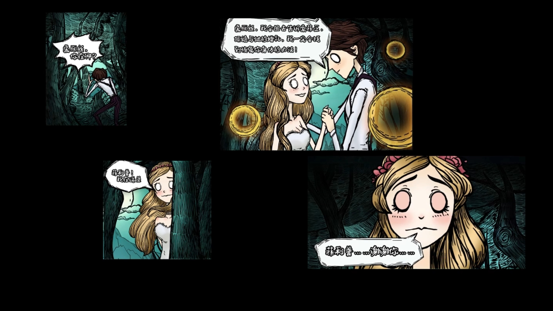 开头直接名场景复刻,主角菲利普还未退婚然后开开心心的回去找爱丽丝。属实是带恶人。对于没有看过原作的玩家来说这样其实比较突兀(不过没看过僵尸新娘的可能也不会买这款游戏)