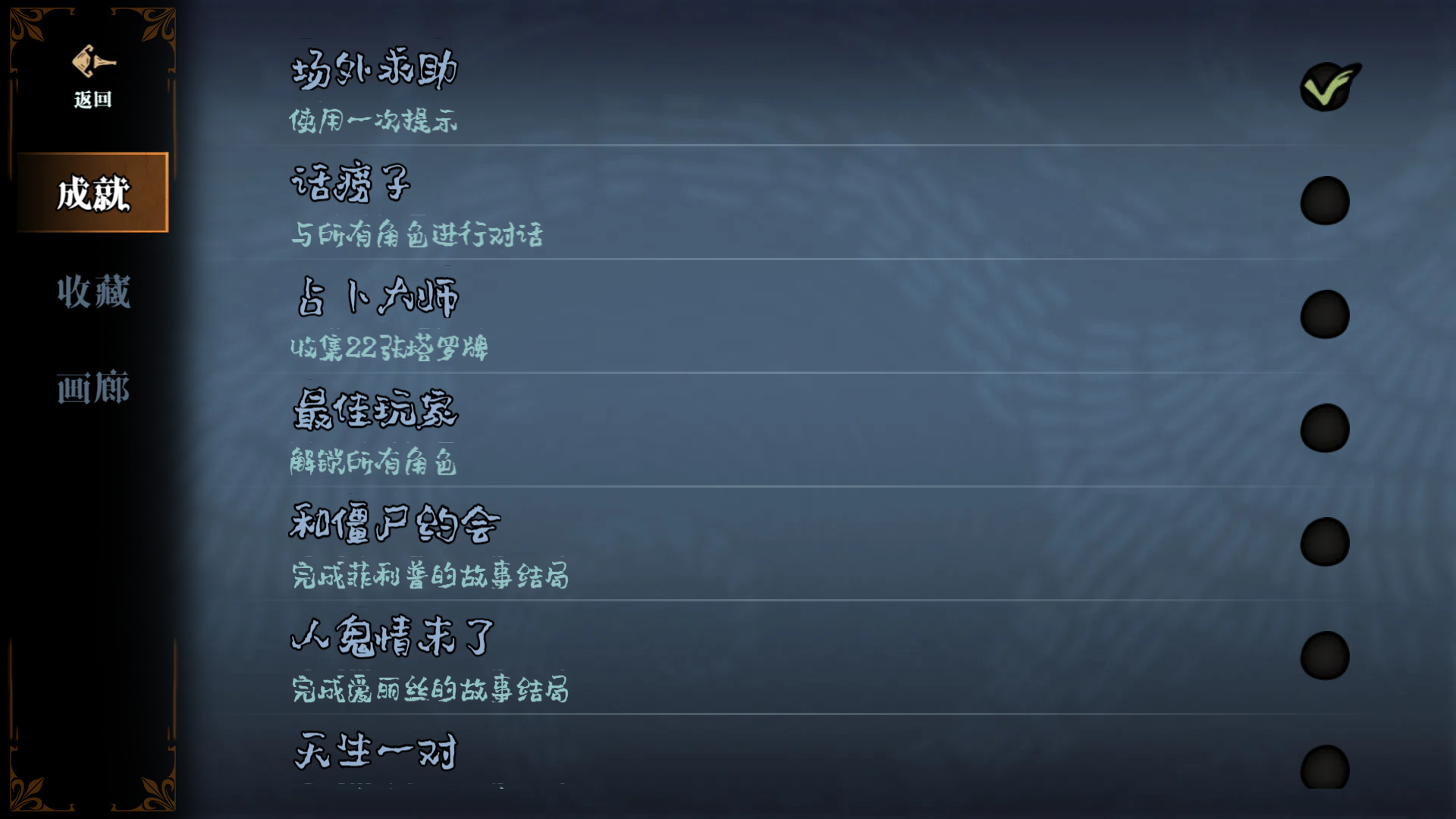 游戏有成就系统,但感觉像是制作组担心内容不够充实而做的,成就只有8个,且去除故事结局之外就不剩啥了,也没有任何难度可言。