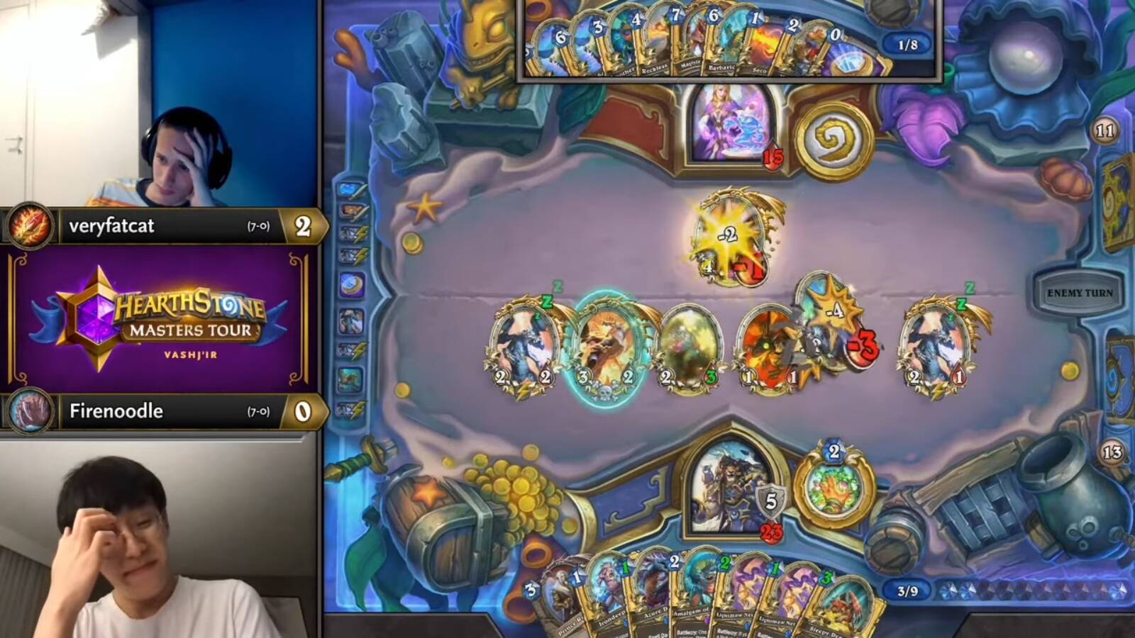 ——硬要说有什么美中不足的话,这次比赛的环境确实是在各种减盒、开奖、大号卡组牌序……以及各种高低上下限卡组的盛行下出现了不少令人无语的景象,顶尖选手此次的表现难免看起来更像是纯粹运气好,也确实有部分选手的表现不太配得上他们的成绩。当然,这和顶尖选手的稳定表现也不矛盾,典型如MTOG们操刀野猪牧和纳迦牧时的表演(四强恰好都带了牧师)。