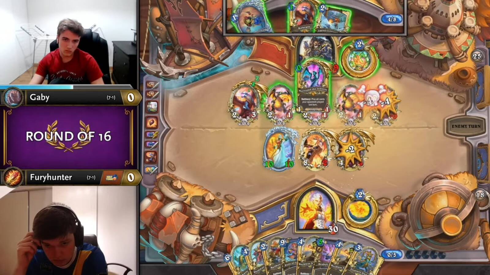 而如果说这位“新人”冠军在普通观众看来还不够知名的话,本届比赛冲击更大的则是欧洲炉石的整体统治。欧洲选手不仅占了淘汰赛近3/4的席位、完全垄断四强——这种情景以前也已经出现过,但这次还有更夺人眼球的全新一幕,那就是Gaby、Furyhunter、Habugabu三位神童的同时出线。在夏季总决赛后的这次再聚首中: