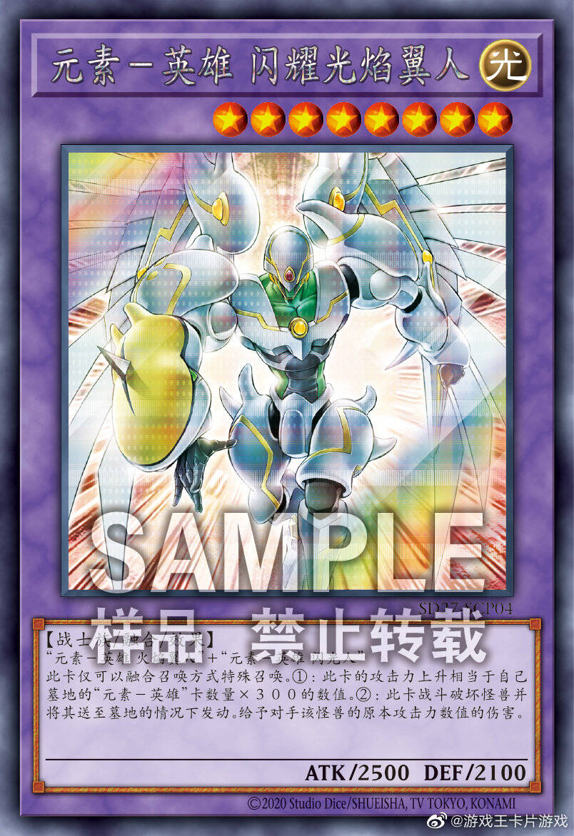 游戏王 决斗怪兽 主题卡组 英雄强袭 -改版-(简体中文版),7月30日发售!融合召唤!现身吧!全新的英雄!!本次为大家带来的预览卡片为主题卡组 英雄强袭 -改版-收录卡片,『元素-英雄 闪耀光焰翼人』!