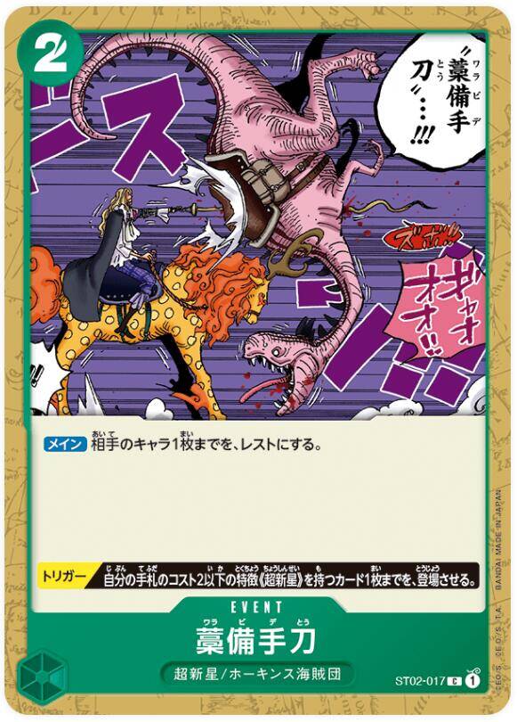 [登场时]将至多1张自己的5费以下并且持有超新星或心脏海贼团特质的角色重置。