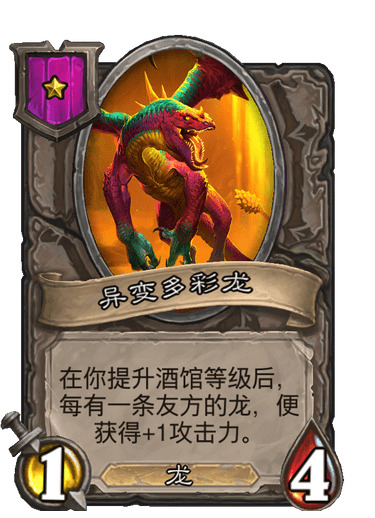 145077:在你提升酒馆等级后,每有一条友方的龙,便获得+1/+1。