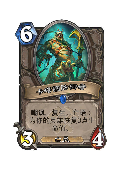 158725:嘲讽,复生。亡语:为你的英雄恢复3点生命值。