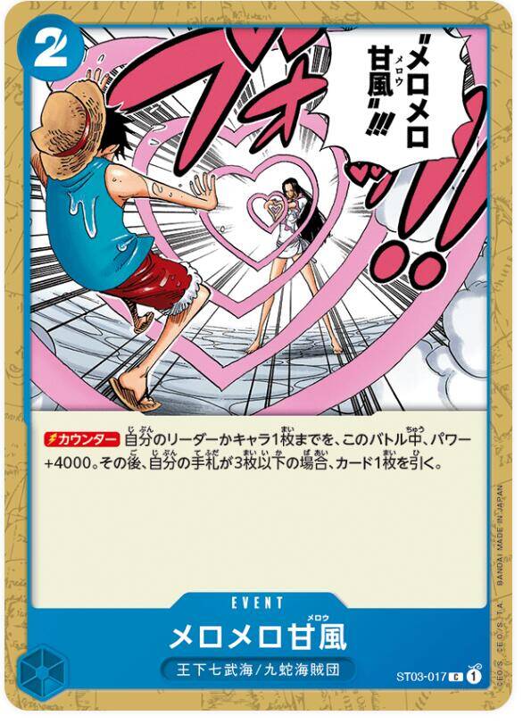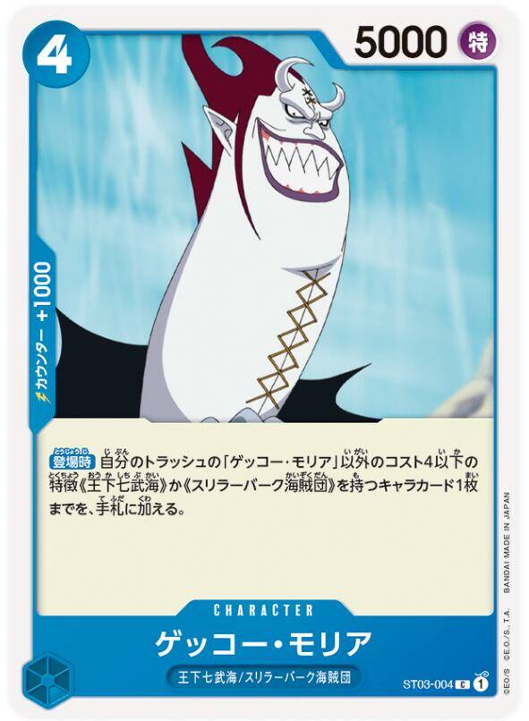 [登场时]从自己的弃牌堆中将月光·莫利亚以外的至多1张4费以下且持有王下七武海或恐怖三桅帆船海贼团特质的角色加入手牌。