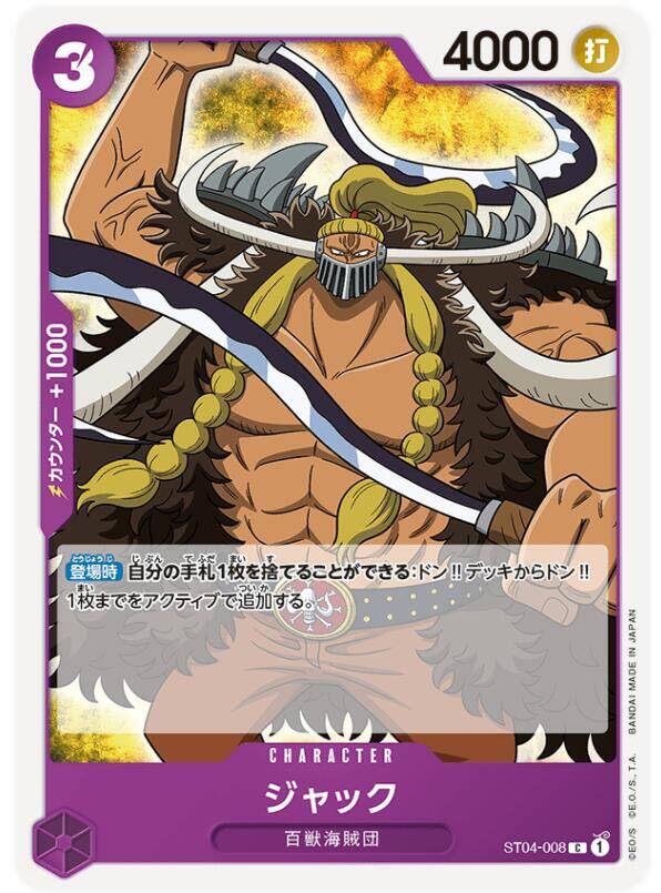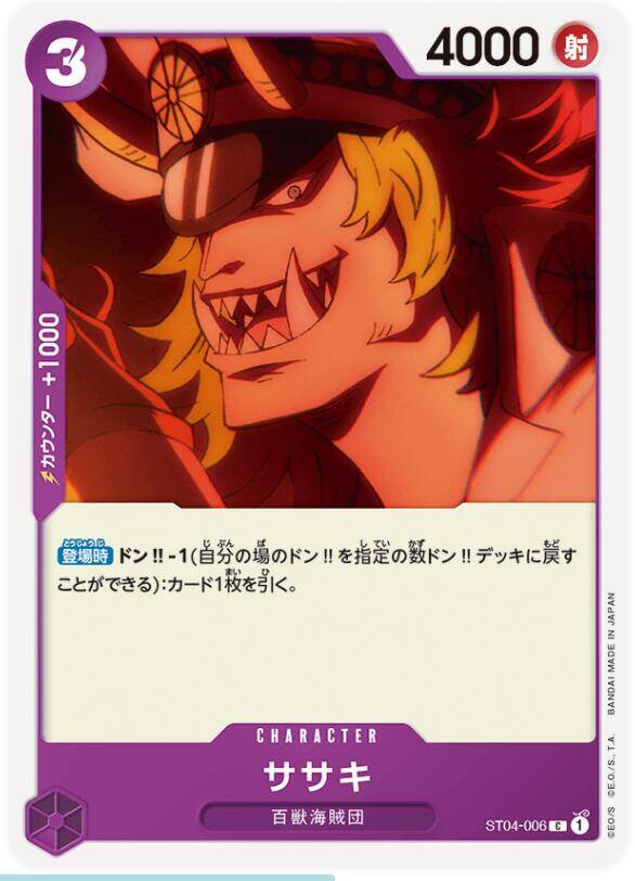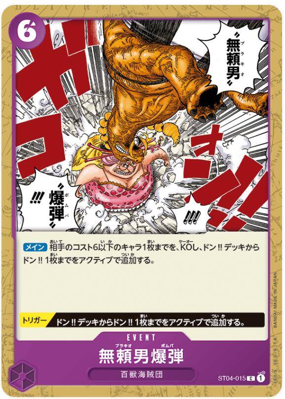 [主要]将至多1张6费以下的对方角色KO,从咚卡组中将一张咚!!以重置状态追加。