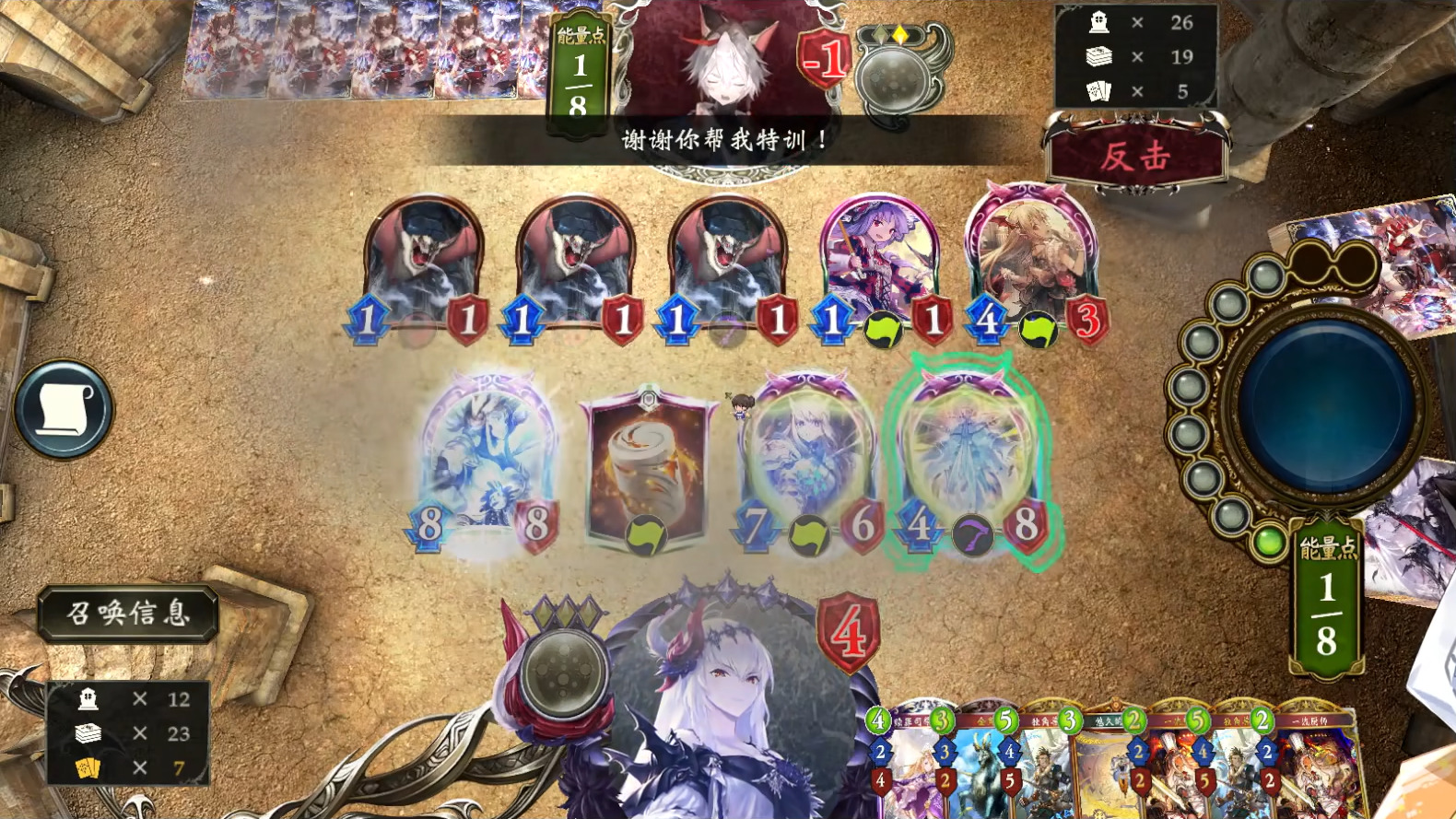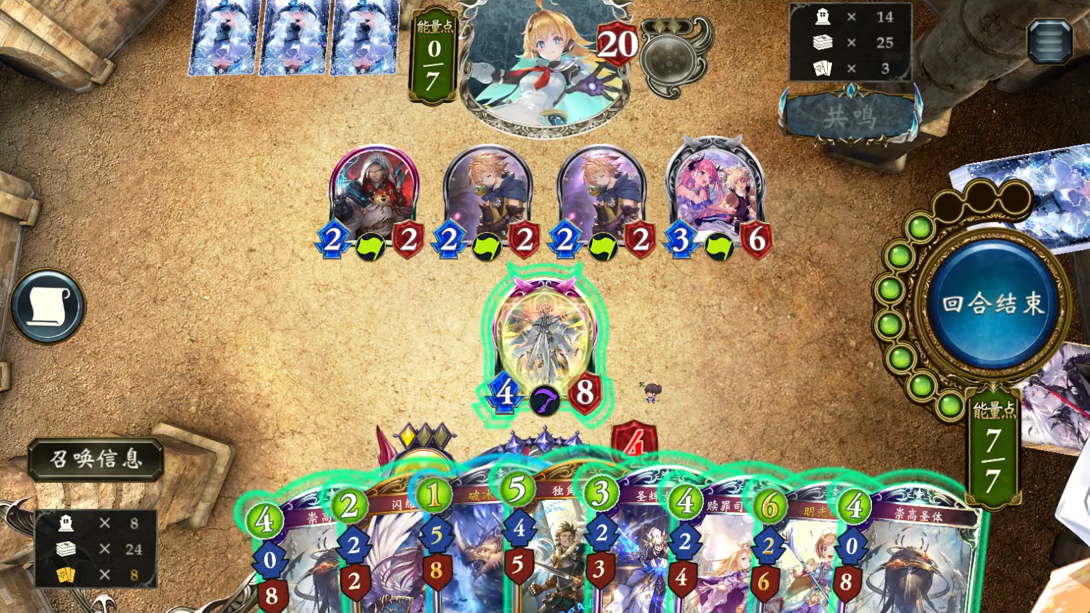 还应规划后续回合动作。如果后续回合不需要进化点,可以提前交掉。例如准备在第6、7回合分别爆能贞德、金角羚的话,可以在第5回合使用进化点,以堆叠进化数。