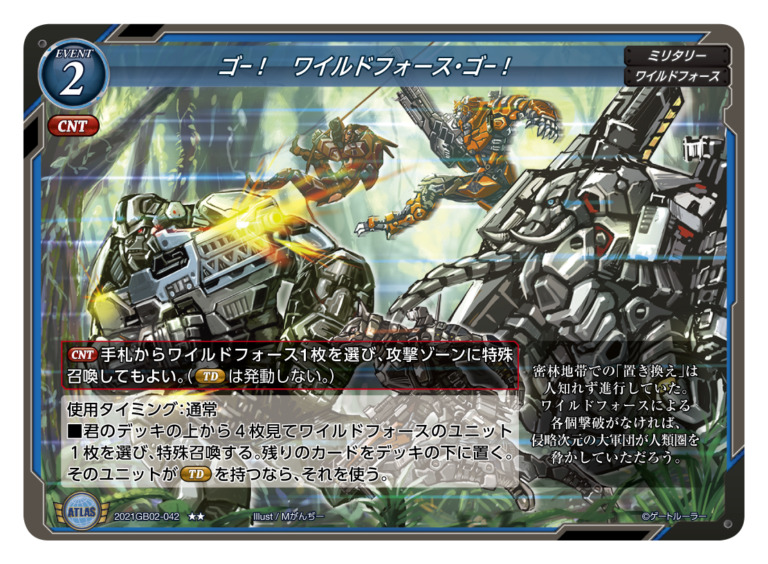 时机:通常 查看牌堆上方的四张牌,选择一张野蛮军单位,将其特殊召唤。将其余牌置于牌堆底。如果该单位具有【TD】能力,将其发动。