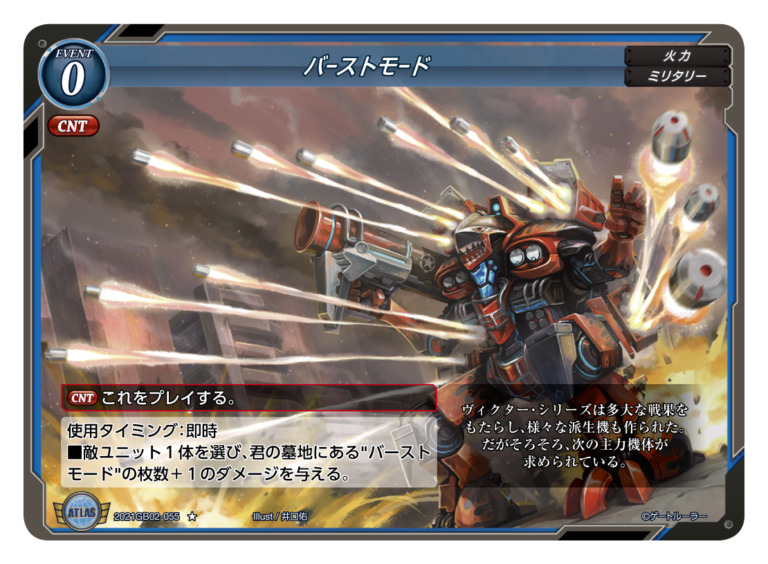 时机:立即 选择一个敌方单位,造成1+墓地中“爆裂模式”数量的伤害