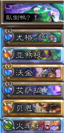 123也存在暗影沃卡亚,但是较少,而卡蛇瓦和卡蛇波则被我们完全碾压。对阵圣光挖宝,两回合都乱速对手的乌瑟尔让对手瓦无法进入潜行,亚煞极正常提盾,第三回合开面具,杀死挖宝宣布游戏结束,小优。对阵贝恩变装冒险者,保住亚煞极能够正常开出面具即可拿下,小优。