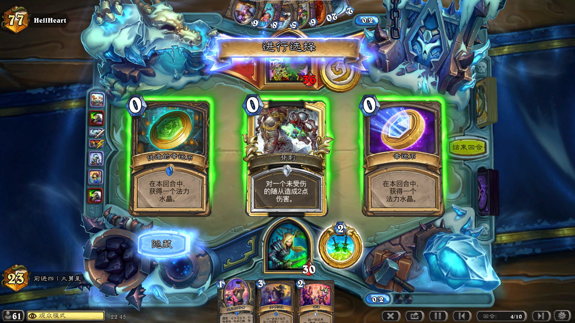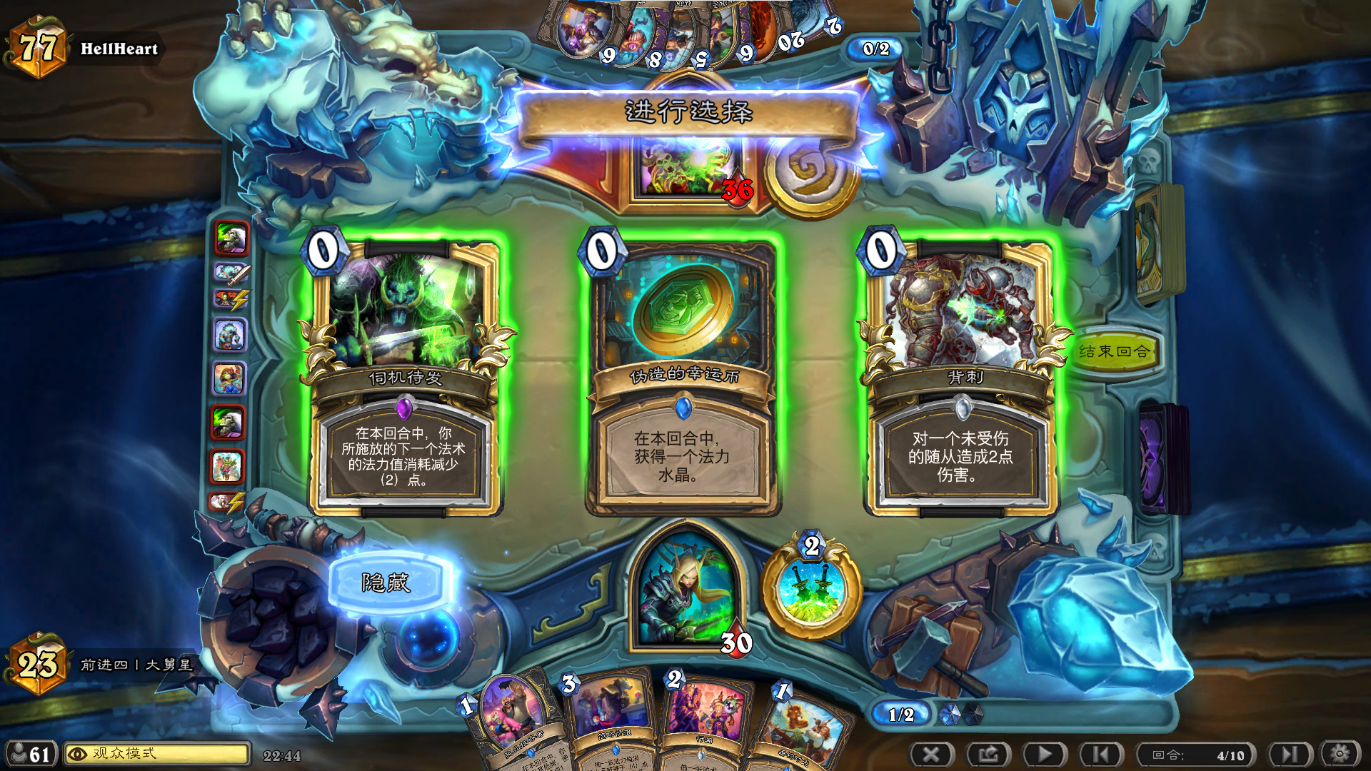 4.通道与交易牌使用技巧。通道是起手必留牌,除非后手起手双狼且右手没抽到中立卡可考虑一费开通道,否则基本都是2费开,直接将狼减成零费,保证节奏顺畅。注意,当之后回合没有好的开通道的时机时,就尽量早开。例如1费芬利或2费通道,3费提刀,4费墓地,5费拍**斩杀,这是非常紧凑的节奏,那么手里有通道就可以考虑4费墓地后直接开赌上限,里面出狼、**、伺机待发、暗影步等都可能立大功。注意,通道里的牌在回到牌库时会使牌库乱序,但如果将通道中的牌全用光则回合结束时不会乱序,同理,通道加芬利也不会使牌库乱序。