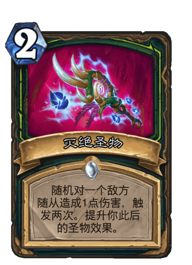 随机对一个敌方随从造成1点伤害,触发两次。提升你此后的圣物效果。