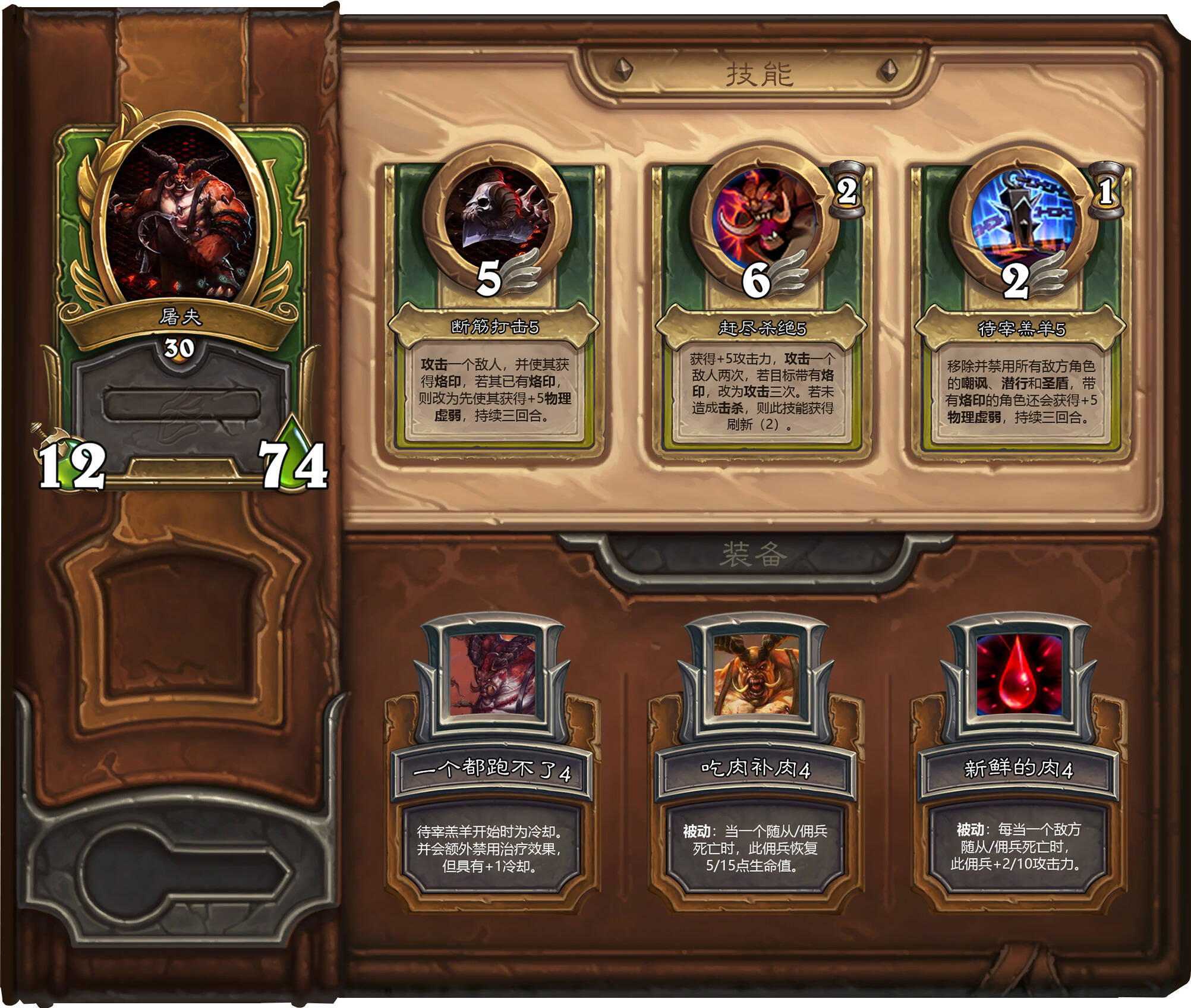 屠夫的定位就简单,等着赶尽杀绝的CD就完事了,打施法者的话,加上有待宰羔羊的辅助。赶尽杀绝基本上是必杀。