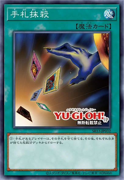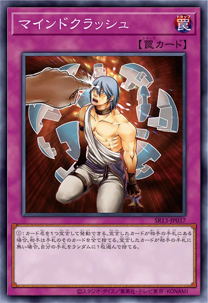 ①:宣言1个卡名可以发动。对手手牌中有宣言的卡的情况下,对手将手牌的该卡全部舍弃。对手手牌中没有宣言的卡的情况下,自己从手牌中随机挑选1张舍弃。