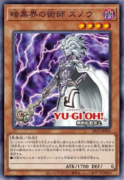 这张卡被卡的效果从手卡丢弃去墓地的场合,从自己卡组把1张名字带有「暗黑界」的卡加入手卡。被对方的卡的效果丢弃的场合,可以再选择对方墓地存在的1只怪兽在自己场上表侧守备表示特殊召唤。