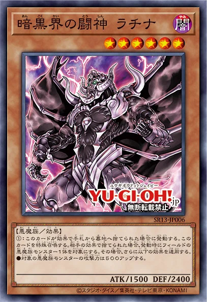场上表侧表示存在的恶魔族怪兽的攻击力·守备力上升300。1回合1次,可以把自己墓地存在的1只恶魔族怪兽从游戏中除外,从手卡选择1只恶魔族怪兽丢弃。那之后,从自己卡组抽1张卡。