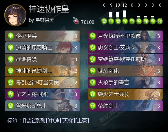神速的迅捷剑士能配合武装强化打出高爆发,还有机会在第8回合甚至更早(被战地传唤抽到并减费的话)配合2张强化打OTK。