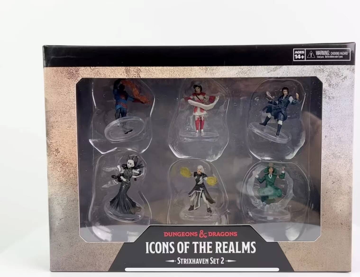 此前威世智于2021年12月推出过一本名为《斯翠海文:混沌课程》(Strixhaven: A Curriculum of Chaos)的跑团世界观设定书,算是《公会长的拉尼卡指南》(Guildmasters' Guide to Ravnica)和《塞洛斯神话之旅》(Mythic Odysseys of Theros )的后续世设书产品(话说作为世设书,书名都不提斯翠海文大学所在时空的名字)。同样地,威世智授权Wizkids公司生产了该书的周边预涂棋子,将于7月份上市(如果没跳票的话)。不同于之前两本世设书推出了一整套包括盲盒、明盒的五十个左右的各种体型的预涂棋子,斯翠海文的预涂棋子产品仅有两个明盒产品,即Strixhaven set 1&2,由于是跑团周边产品,该产品归属于DND跑团棋子Icons of the Realms系列产品线(专门提这一点是因为今年初的AFR周边预涂棋子作为DND角色,归属于MTG系列棋子产品线,非常怪异)。