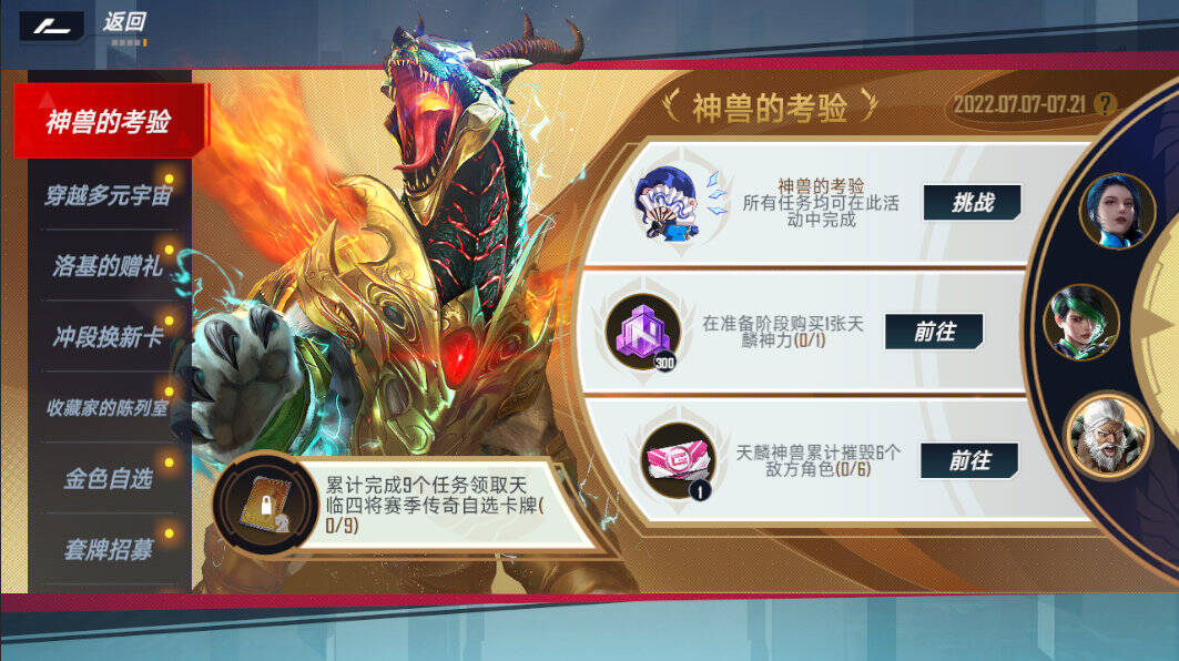 神兽现世,考验来临!参与“神兽的考验”限时活动,通关所有试炼,赢得全新传奇卡牌!