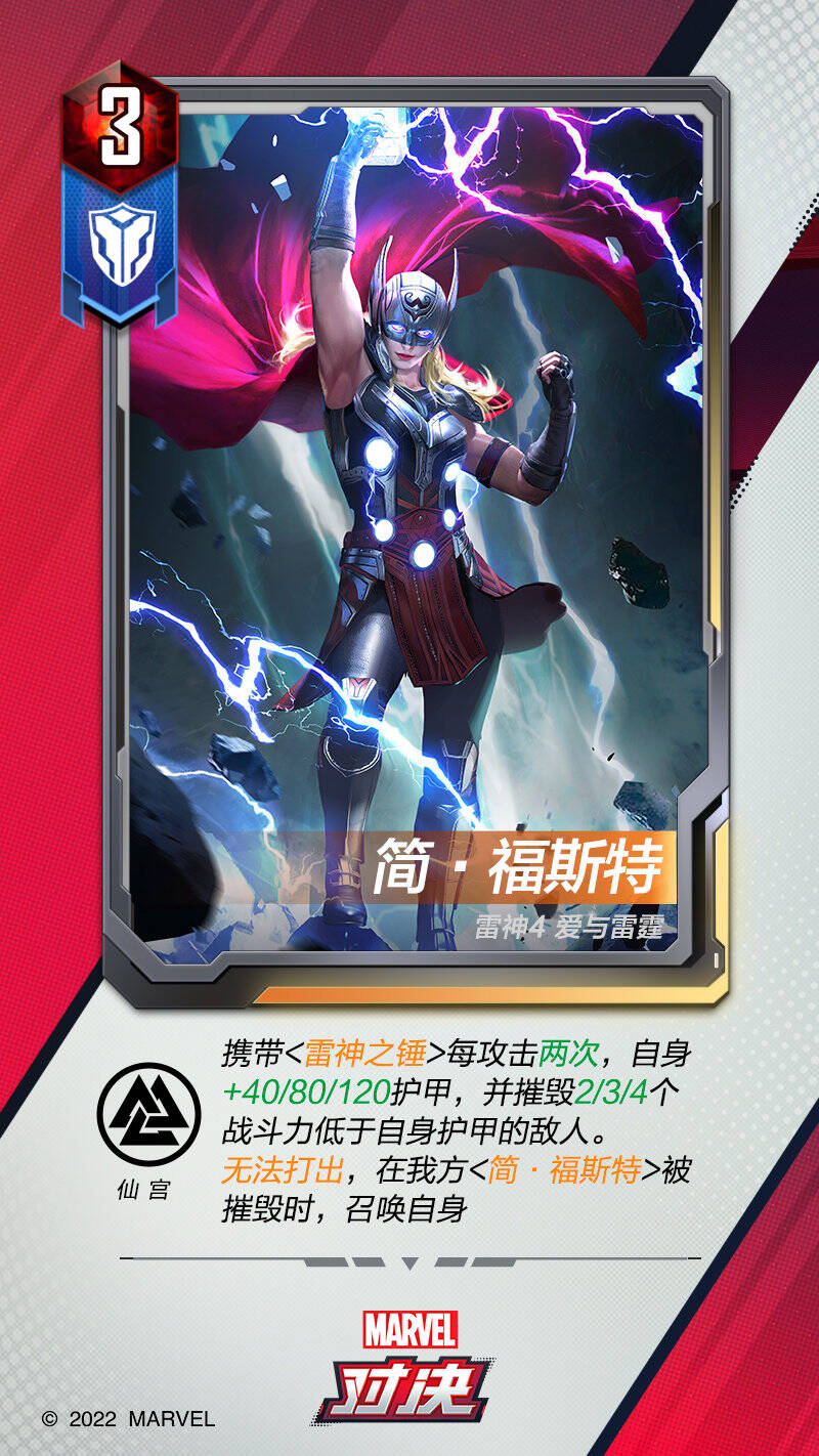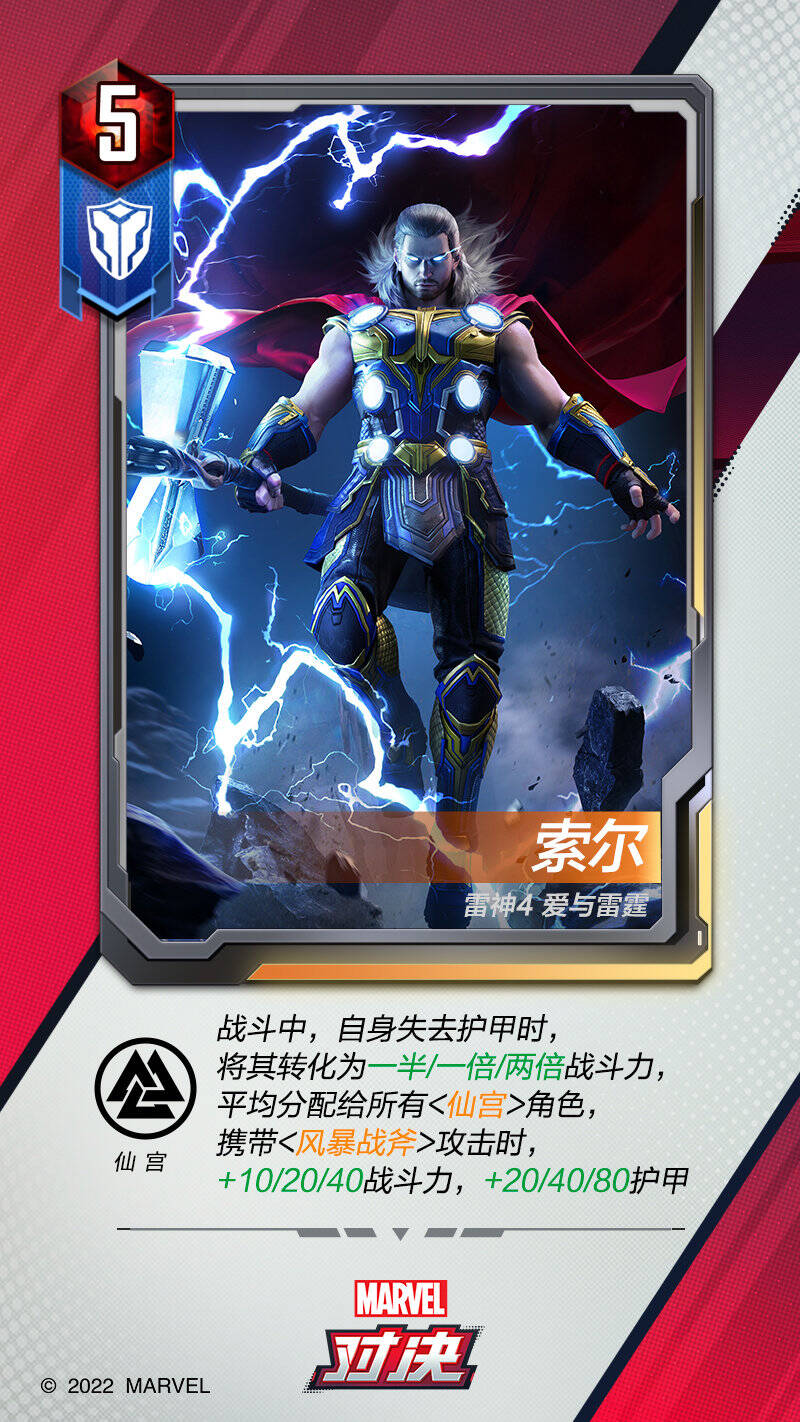 同时,登陆商城礼包处即可免费领取一张[索尔 (漫威影业 雷神4:爱与雷霆)]!两位雷神同时降临漫威宇宙,拥有强大的生存能力,同时还能将护甲转换成战斗力碾压对手!