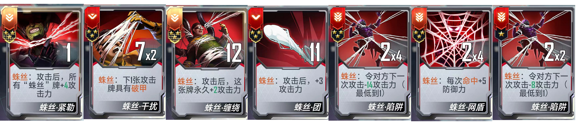 (二)、核心基础卡牌:【蛛丝·缠绕】、【蛛丝·紧勒】、【蛛丝·陷阱】