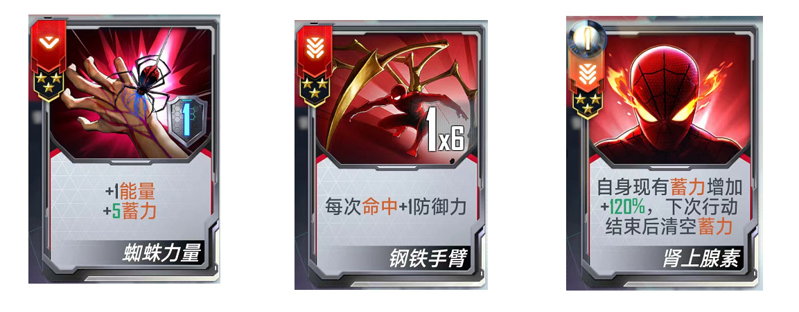 (二)、核心基础卡牌:【蜘蛛力量】、【钢铁手臂】、【肾上腺素】
