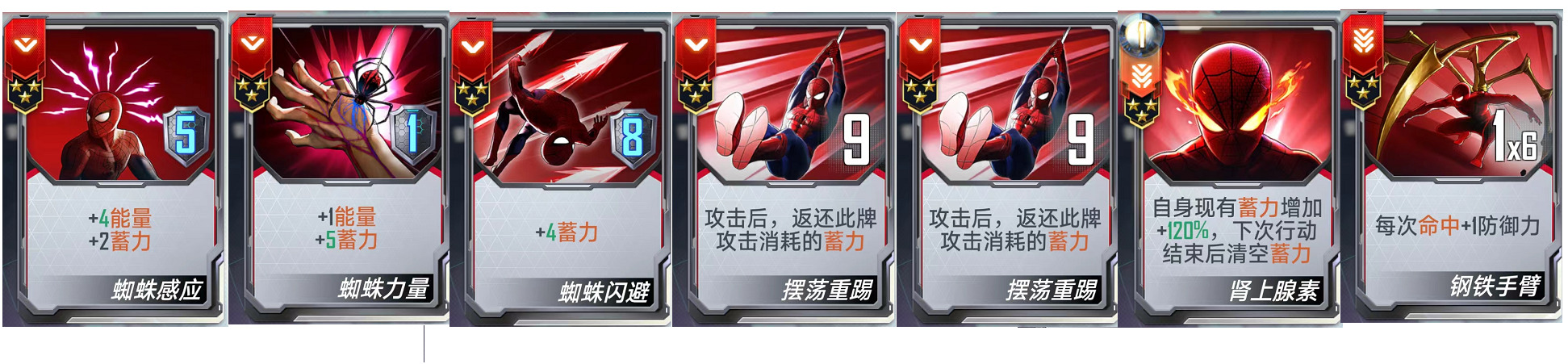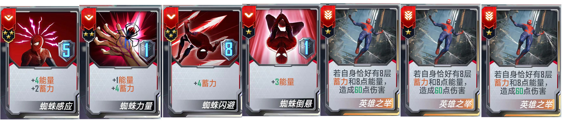 (二)、核心卡牌:【英雄之举】、【蜘蛛感应】、【蜘蛛力量】