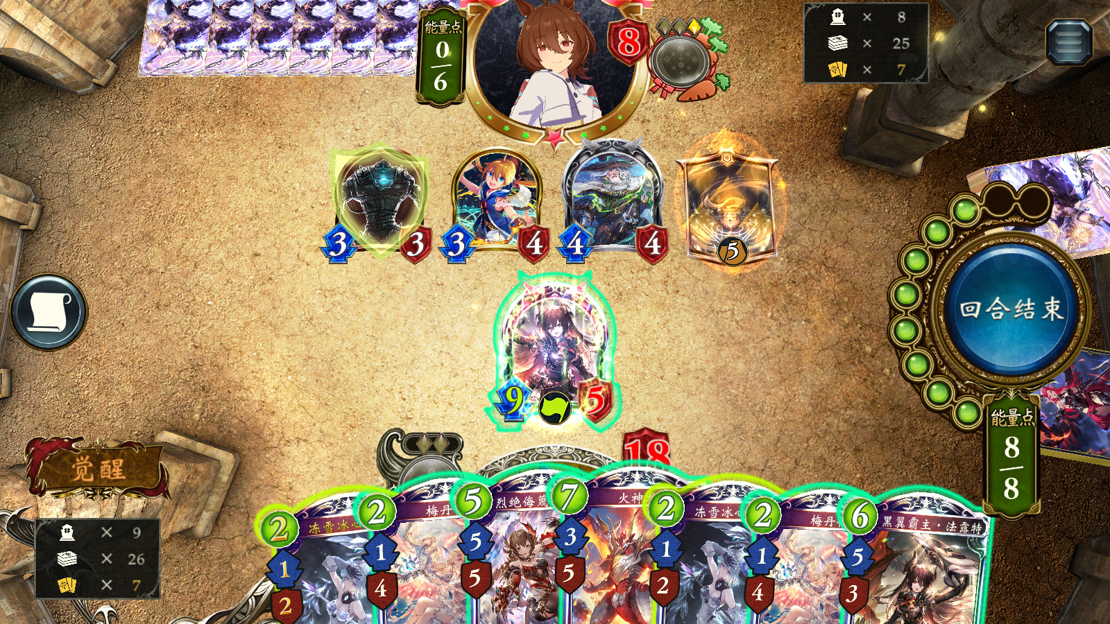 【中后期】未觉醒时的操作参考第4回合。此外,还可以在对非抢血思路时爆能罗文——可以在6费时爆能,为下回合节省费用;也可以场上有随从能打脸抢血的情况下在5费时爆能,或在下回合能跳费的情况下在5费时爆能。