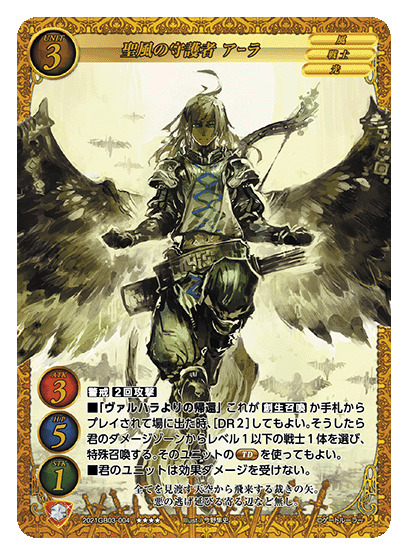 【瓦尔哈拉的回归】当此牌通过创生召唤,或从手牌进场时,【DR2】选择一个等级为1或以下的战士单位从你的伤害区域特殊召唤至场上。如果该单位拥有【TD】能力,则你可以发动该能力