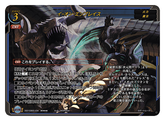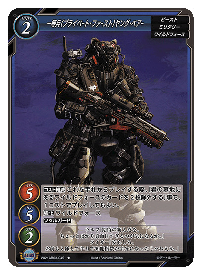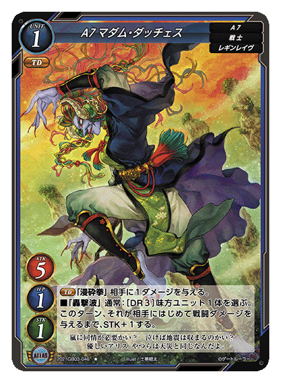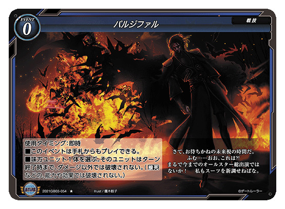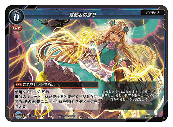 【可能性的集合】:对手发动事件或你的单位攻击时,将你卡组顶的一张卡放置到这个单位的灵魂之中
