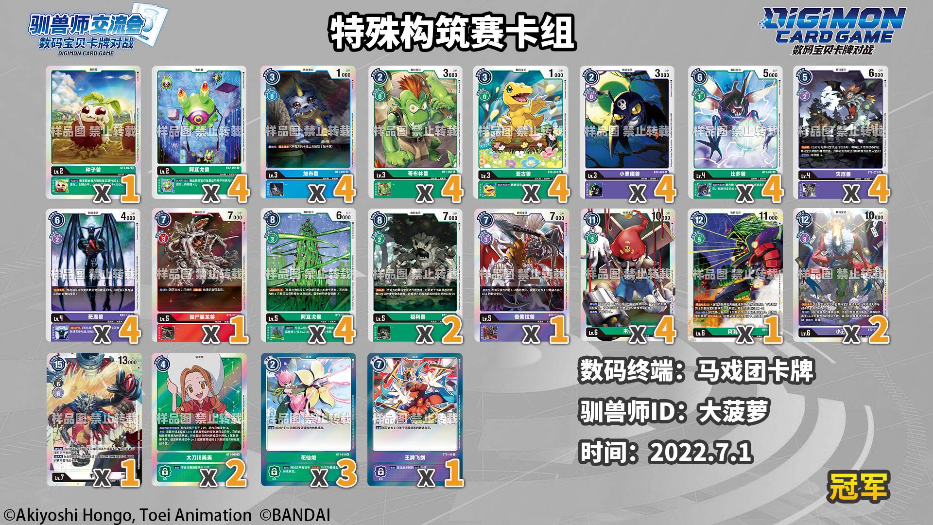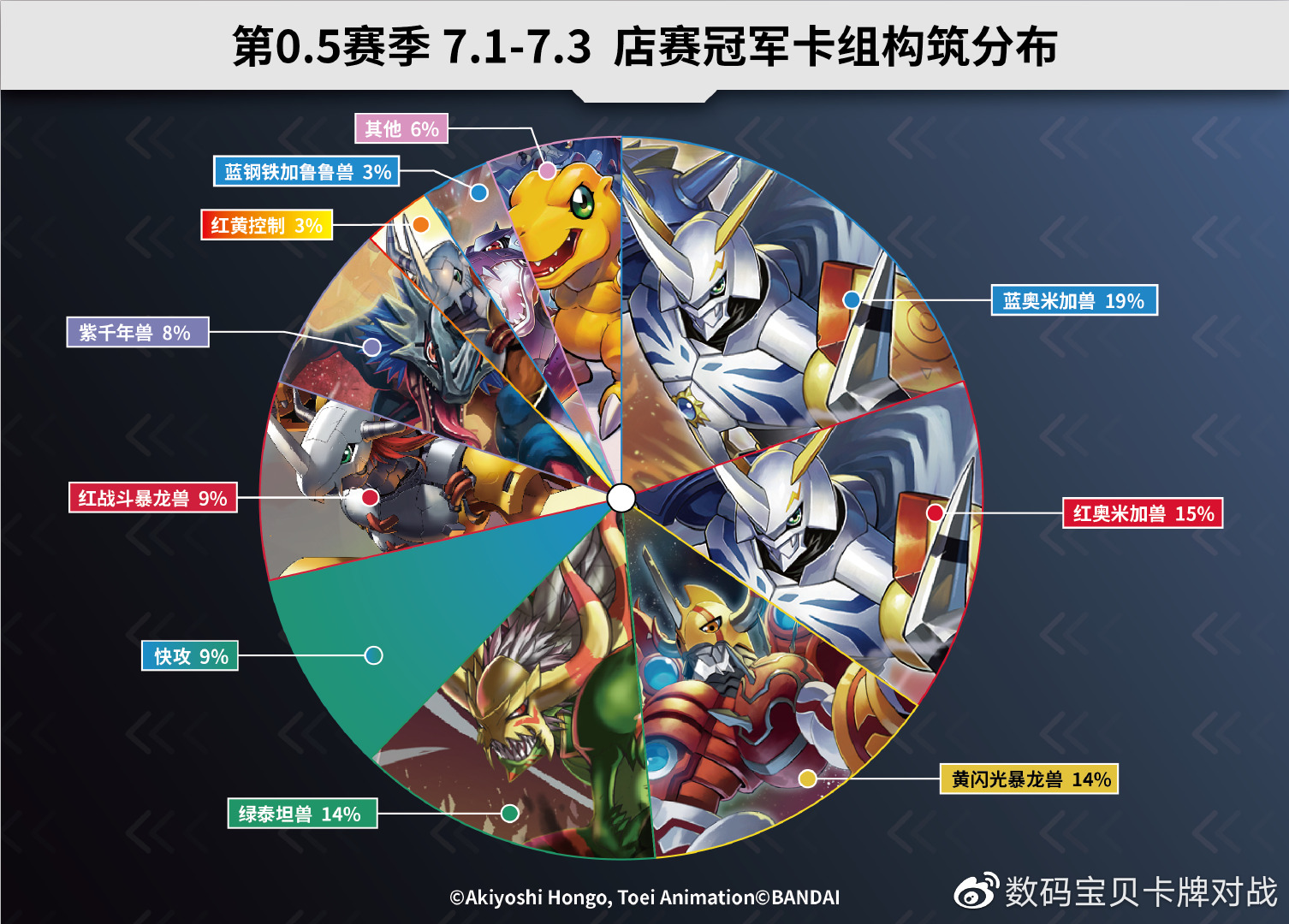 感谢各数码终端和驯兽师们为我们提供的数据及卡组照片!以下数据仅供各位参考!因收到的卡组照片可能会有模糊不清的状况,展示的卡组可能与实际构筑有所出入。对本次统计如有疑问和建议欢迎以转发/评论/私信等方式联系我们!