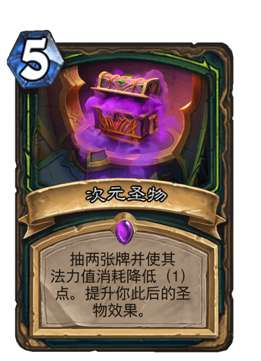 抽两张牌并使其法力值消耗降低(1)点。提升你此后的圣物效果。