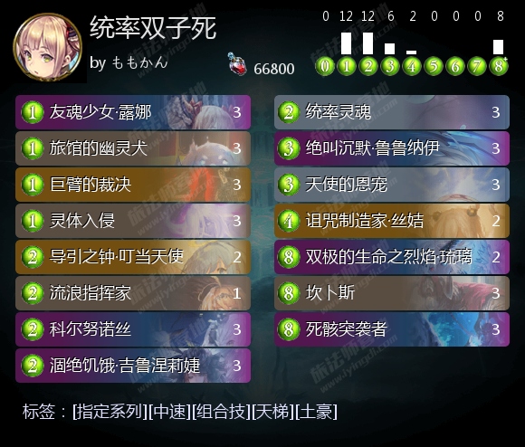 【第2回合】优先使用统率灵魂。也可使用2张1费牌,包括1费随从、露娜的玩偶、激奏坎卜斯,以及能回收2张牌的裁决(可以先送掉场上的1费随从,再使用裁决)。没有以上动作的话,可以使用流浪指挥家。如果预计需要在第4回合使用扩散,但墓场数不足,要用裁决葬送鲁鲁纳伊。实在无事可做的话,可以卖掉吉鲁涅莉婕,但慎用鹿妹(有裁决的话可以积极使用),先手慎用叮当。