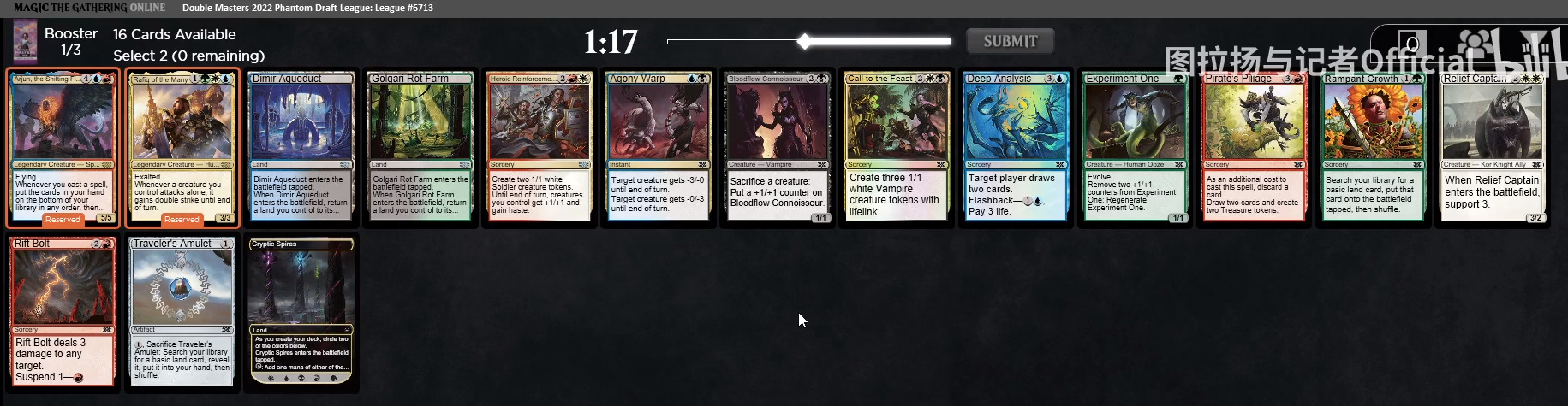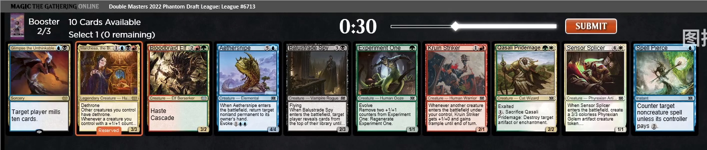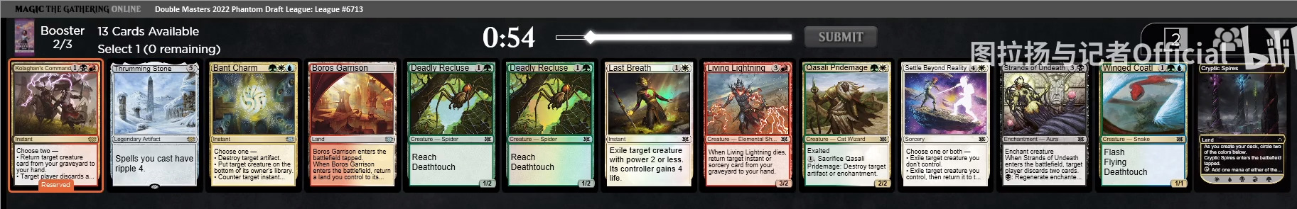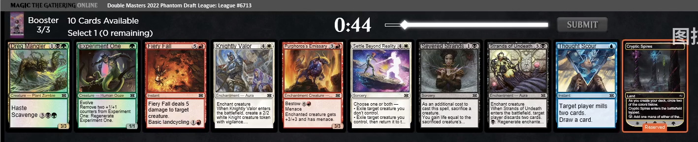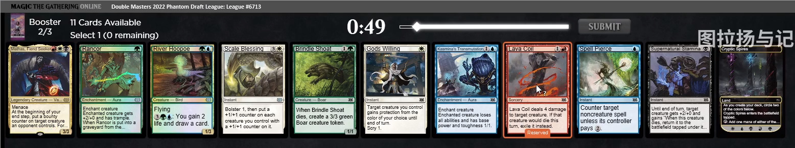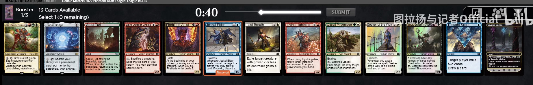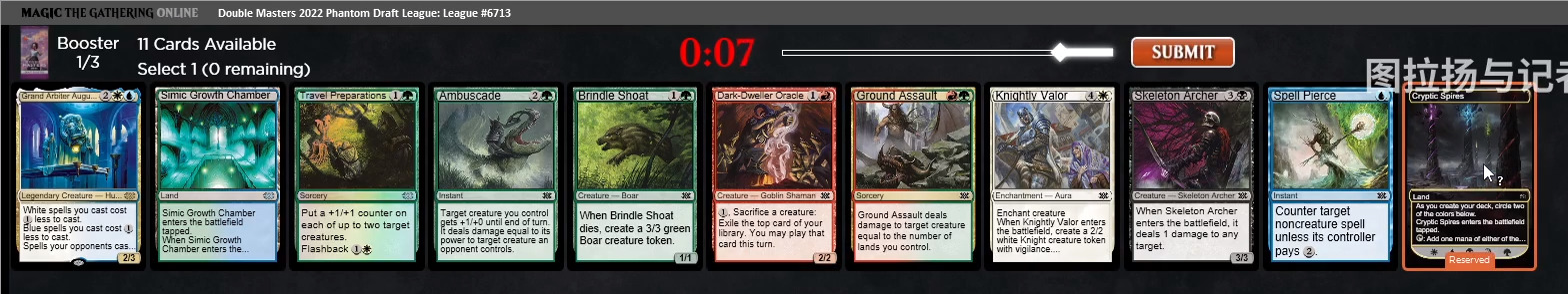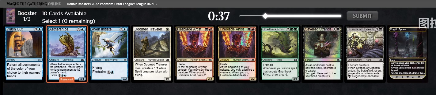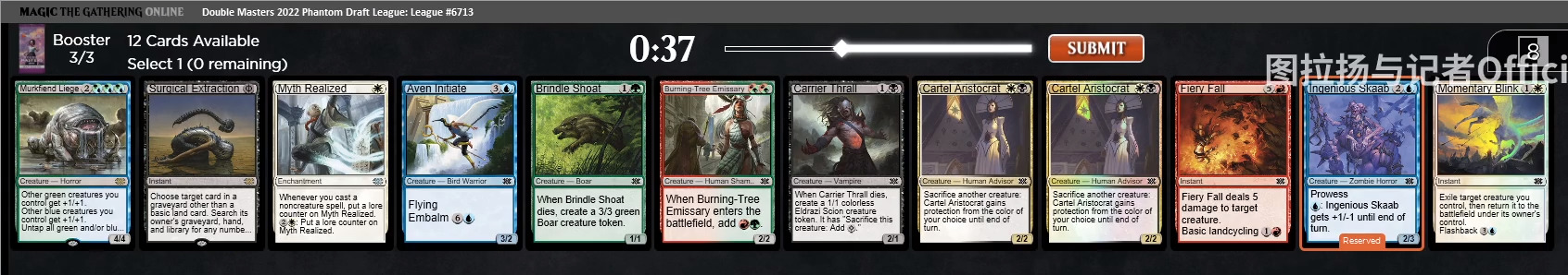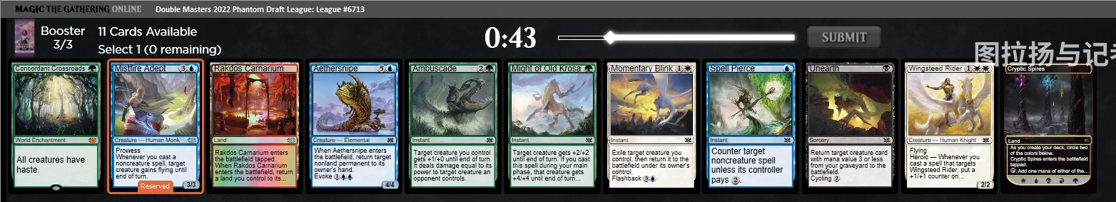 我还愣了一下,然后才反应过来我选的是幻影轮抓(报名费较少,牌抓了不是自己的)。这系列MO的牌价特别低,实体贵的牌MO上除了小六FON都不值钱,综合预期还不如T2系列,而报名费却是T2系列的两倍,想玩建议还是幻影。