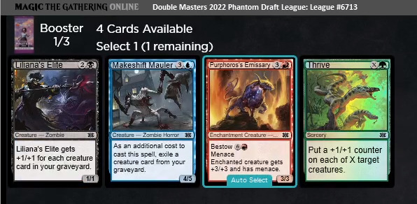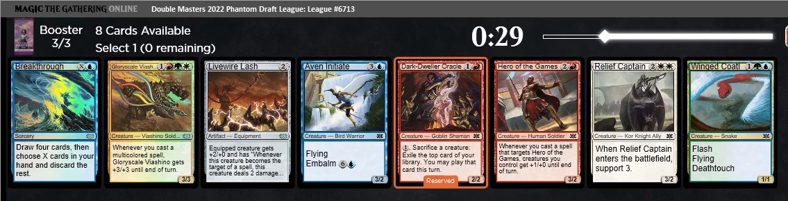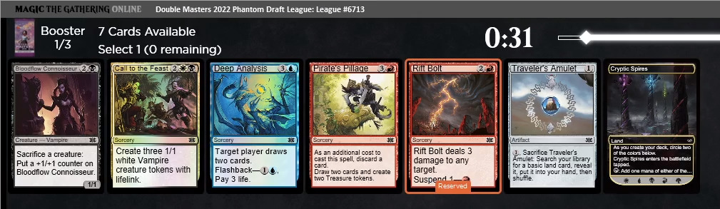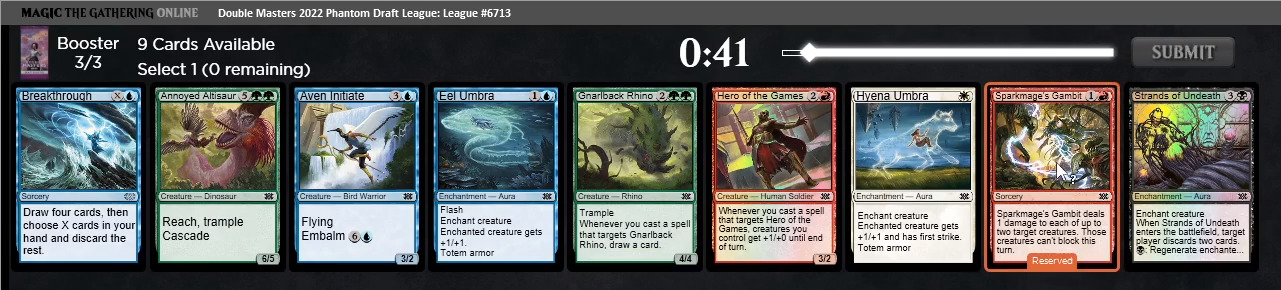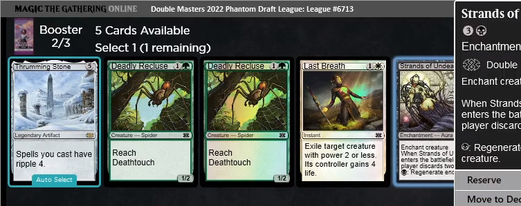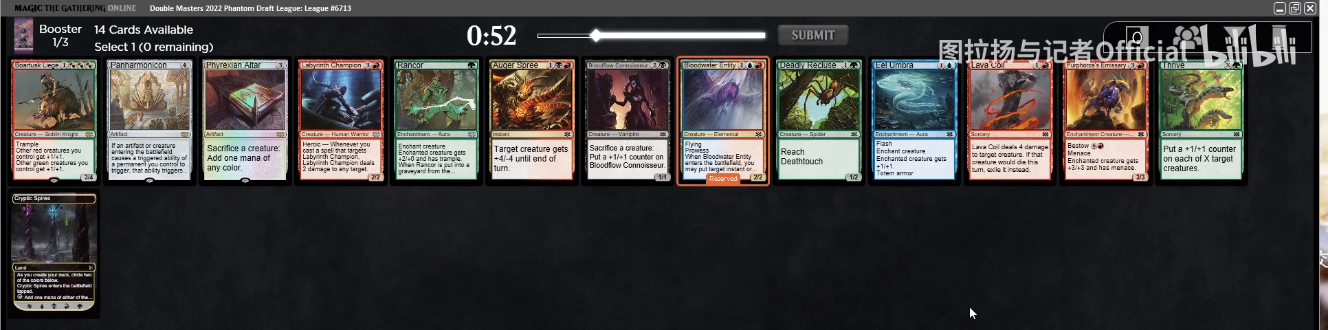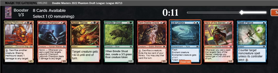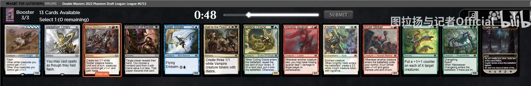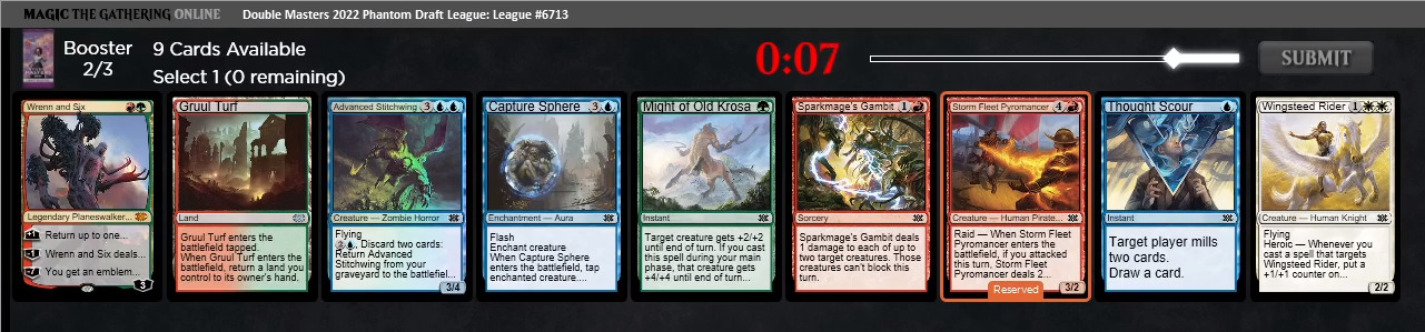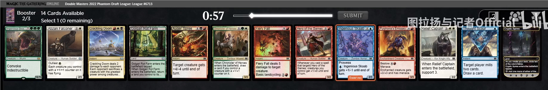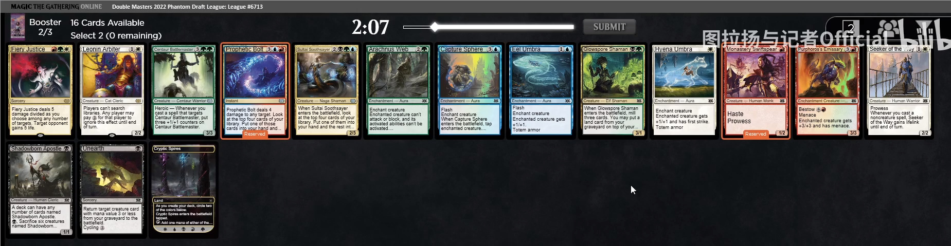 我还愣了一下,然后才反应过来我选的是幻影轮抓(报名费较少,牌抓了不是自己的)。这系列MO的牌价特别低,实体贵的牌MO上除了小六FON都不值钱,综合预期还不如T2系列,而报名费却是T2系列的两倍,想玩建议还是幻影。