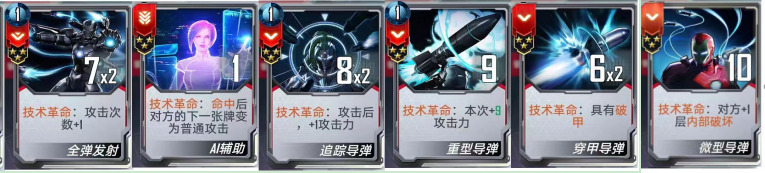 点燃跟破甲不需要能量,可以前置,耗能特效卡要放在运算后面才能正常发动(或者其他加能量的卡后面,能量不够时会休息一回合+1能量),在没有灵感加持的情况下 加攻这张卡收益最高 一定要放在有能量的革命位上 ,越前越好,尽快输出,追踪导弹的特效不佳,放在非革命位上也凑合,跟九头蛇机*一样的临时打工卡。