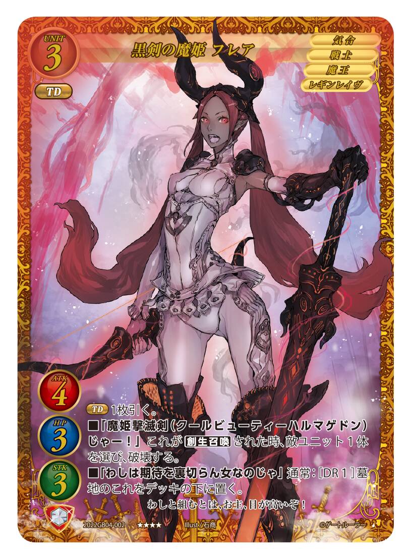 【魔姬歼灭剑!】当此牌根据【创生召唤】登场时,选择并破坏敌方场上的一个单位