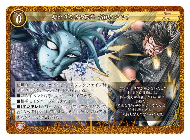 【**!】当你使用此牌时【将你墓地中的3张【气和】牌除外】,将造成的伤害提升至2点!