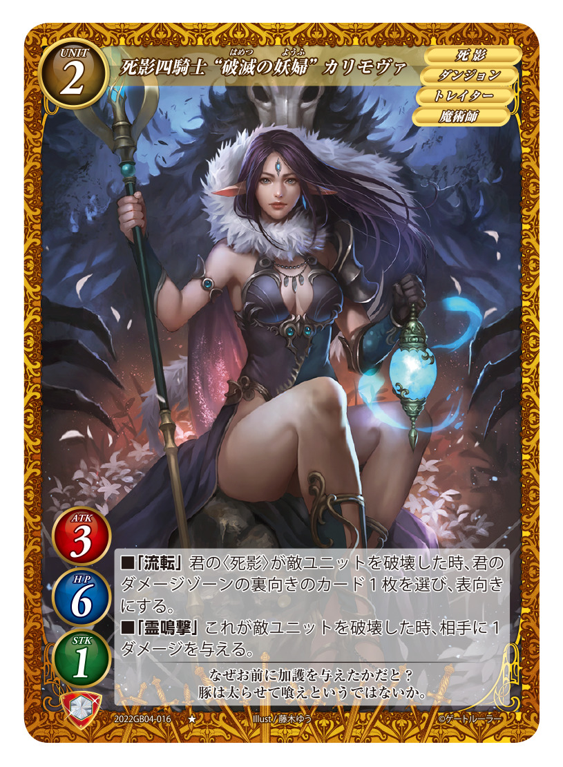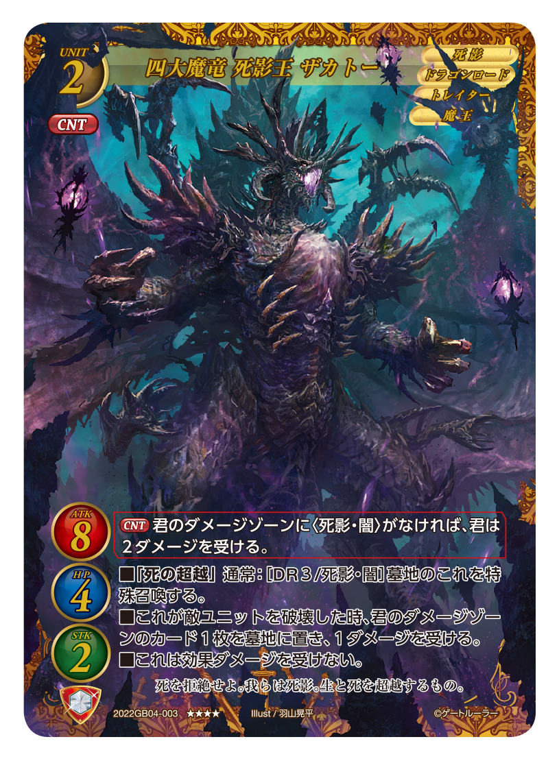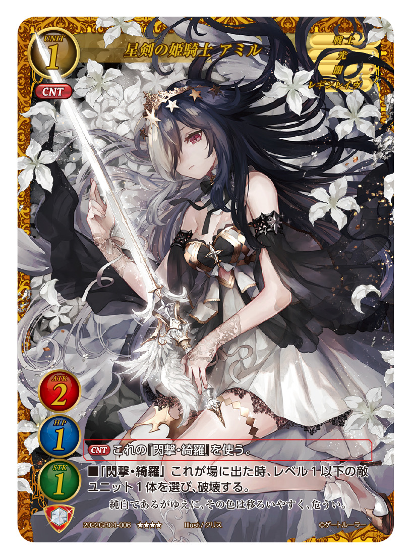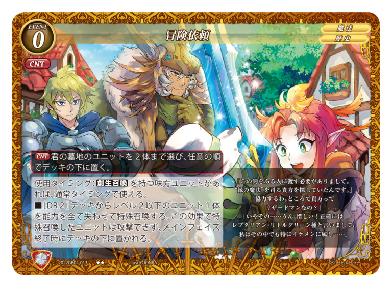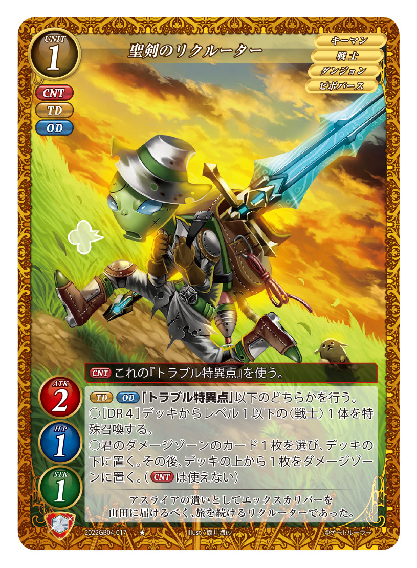 这张卡在除了手牌以外的任何区域均视为等级2的单位(在构筑卡组时依然视为-2级)