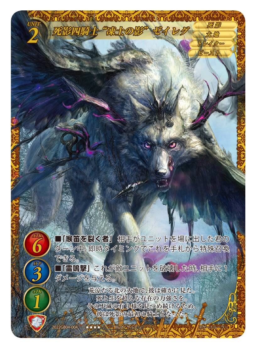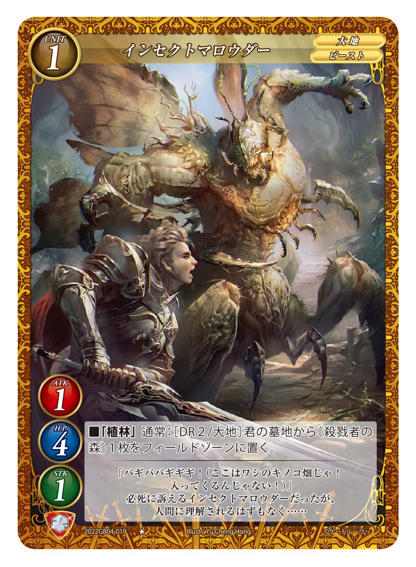 创生召唤:材料 此牌与一张或以上的野兽/圣遗者单位。你可以从牌堆里特殊召唤一张等级为材料等级合之下的野兽或圣遗者单位