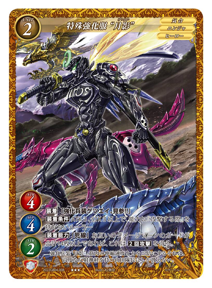 特殊强化服“月影”。 它能将肌肉的伸缩速度和力量提高三倍,只有拥有高度反射神经的山田队长才能驾驭。