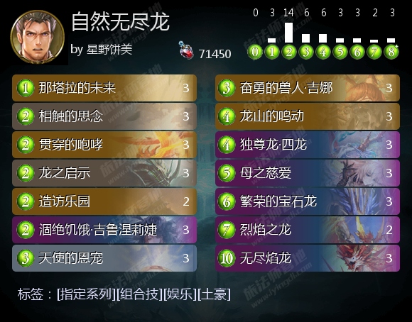 无尽焰龙能触发繁荣的宝石龙的主战者效果,并配合贯穿的咆哮,打出20点直伤。如果有进化点,这一组合还有机会打出更高伤害,击败通过一流厨师等牌提升了血量上限的对手。