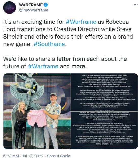 《星际战甲》官推也谈到部分开发人员专注于制作新作《灵魂战甲》,前总监steve sinclair表示,本作是《星际战甲》“镜像宇宙”版本,是一款开放世界合作PVE游戏。本作聚焦奇幻题材而不是科幻题材,战斗“缓慢沉重”不像《星际战甲》那样速度超快。