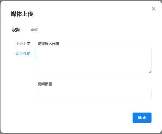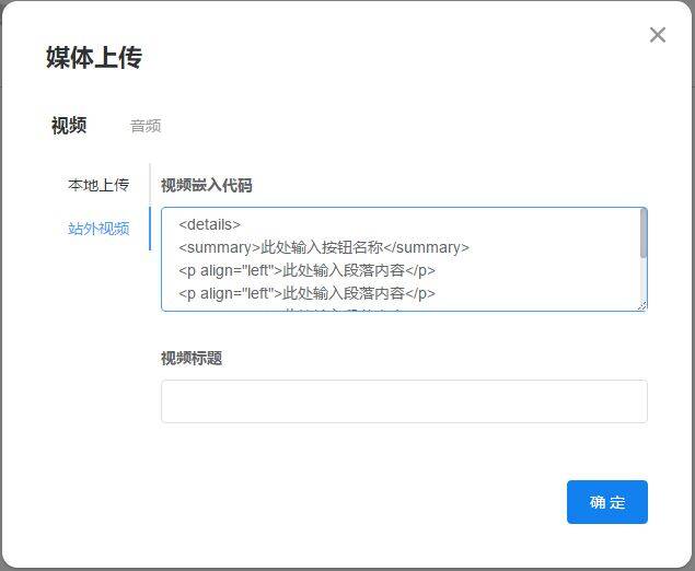 将左对齐代码复制粘贴到“站外视频”,其他地方不用动,点击确定,如下图: