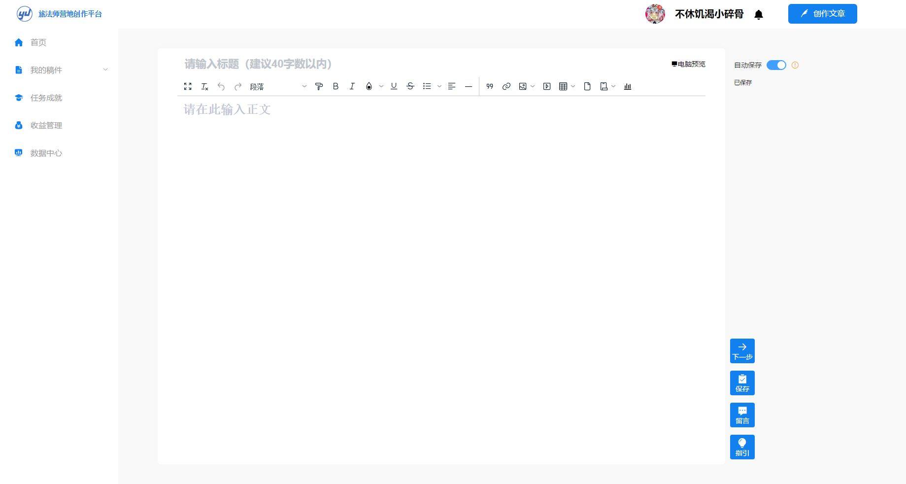 进入“社区文章”后,就可以开始写文章了,如下图: