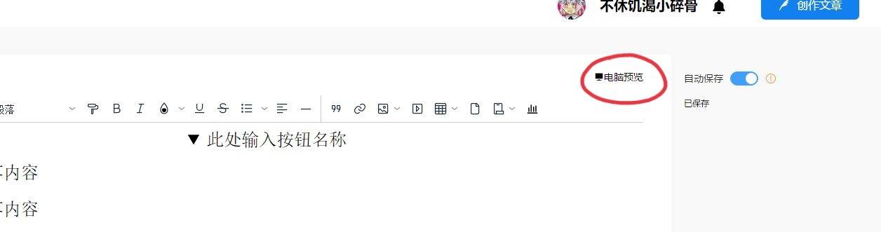 具体操作可以多加测试,点击文章创作右上方的“电脑预览”按钮,可以显示仅你可见的文章效果预览。(记得要写标题才能显示预览)